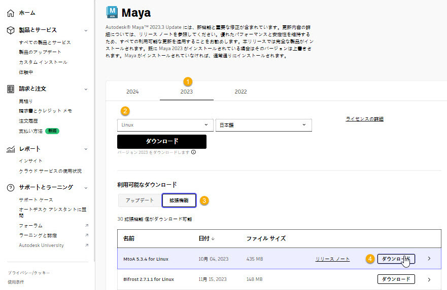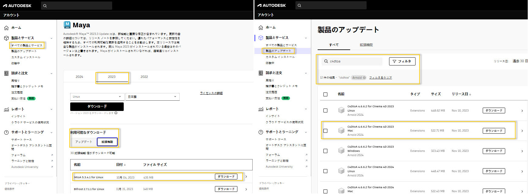学生、教員、およびラボ管理者は、Autodesk Account から MtoA などの Arnold プラグインをダウンロードできます。
