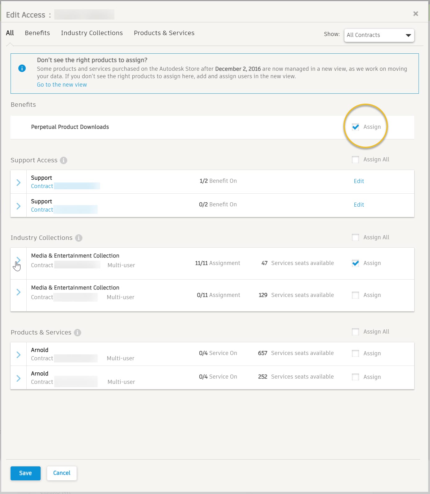 永続的な製品ダウンロード権限を割り当て、Arnold ダウンロードにアクセスできるようにします。