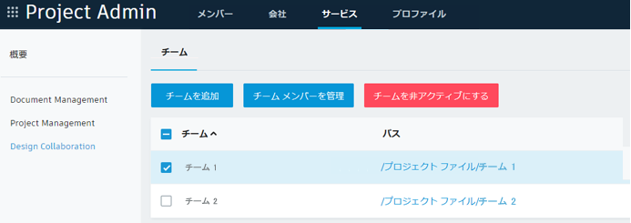 プロジェクト管理者は、チーム メンバーを追加したり、Design Collaboration のメンバー権限を管理したりすることができます。