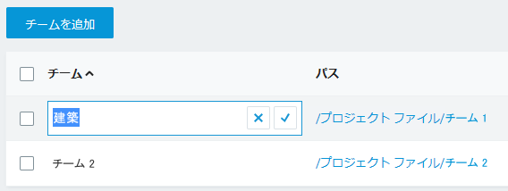 ヒント: チームを追加した後、カーソルをチーム名に合わせてチームのエイリアスを編集することができます。このエイリアスは、[プロジェクト ファイル]フォルダ内のフォルダの名前と同じである必要はありません。