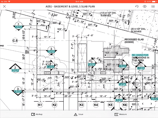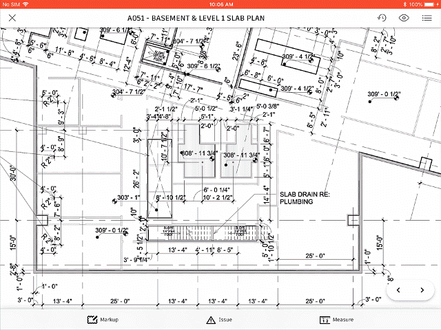 2D ドキュメントまたは 3D モデル内の距離および角度、および 2D ドキュメント内の面積を計測することができます。必要に応じて、計測の設定を調整します。iOS アプリを使用する計測機能の詳細については、「BIM 360 モバイルの機能」を参照してください。