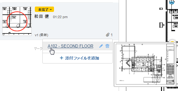 添付ファイルまたはハイパーリンク付きの図面が表示された後で、[戻る]をクリックすると、元の図面に戻ります。