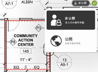 編集権限(またはそれ以上)を持つメンバーは、マークアップを公開できます。[公開]に設定されたマークアップは、プロジェクト メンバーなら誰でも表示できます。