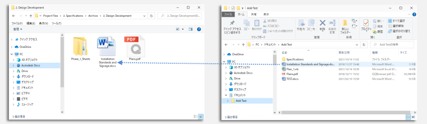 接続されているドライブからローカル ドライブにドキュメントをドラッグして、コピーを作成します。