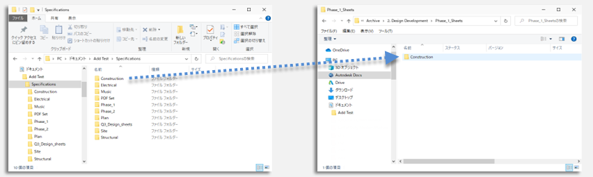 手順 2 のフォルダを手順 4 のコピー先の場所にドラッグします。ファイルが BIM 360 にアップロードされます。