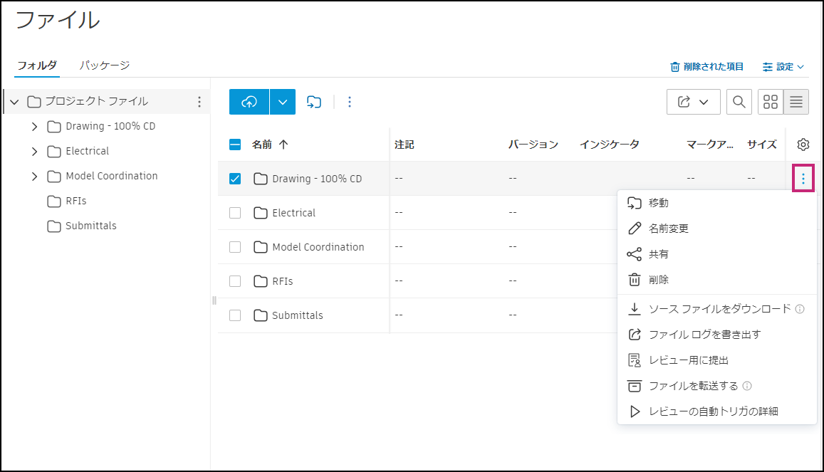 ACC の[ファイル]ツールで、共有する Informed Design 製品を含むフォルダを選択または作成します。