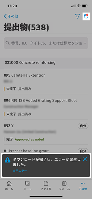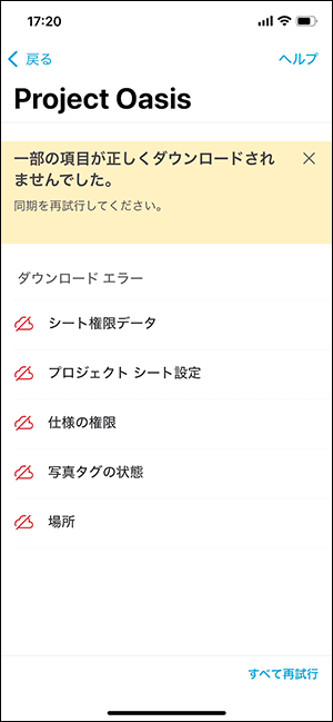 次のトピックでは、Autodesk Construction Cloud mobile app でのプロジェクト内同期の実行中に発生する可能性のあるエラーについて説明または解決します。