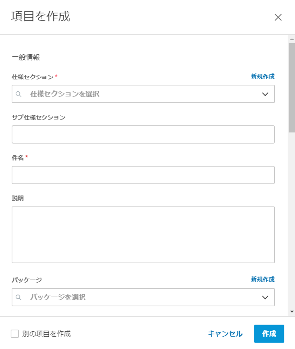 | 仕様セクション | 提出項目を分類する定義済みのカテゴリ。仕様セクションの詳細 |