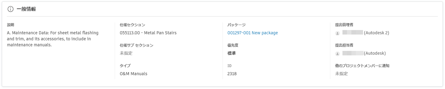 - このセクションには、説明、タイプ、仕様セクションなど、提出項目に関する基本的な情報が含まれています。