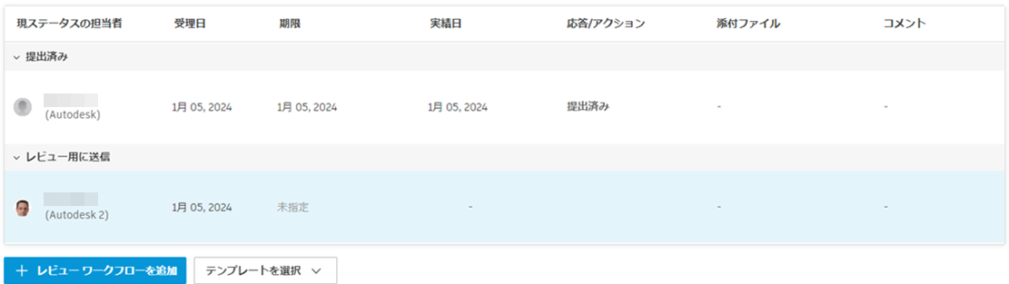 - 進行中または完了したレビュー ステップでは、既に回答したレビュー担当者が、回答の時系列順で最初に表示されます。