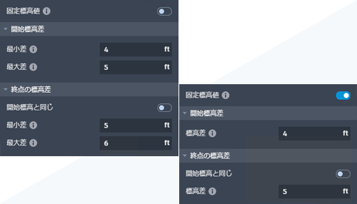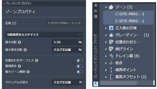 [最小標高]と[最大標高]のオブジェクト プロパティを持つグレーディング オブジェクトを、単一の固定標高に設定できるようになりました。