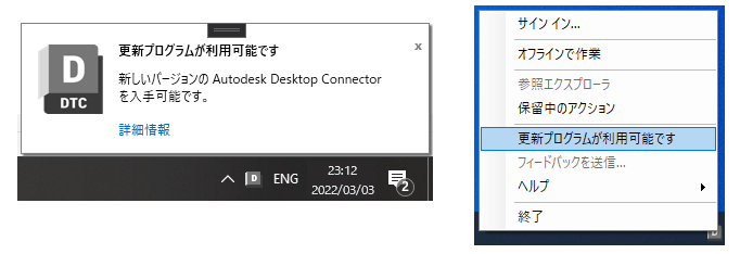 トレイ メニューに新しい[更新プログラムが利用可能です]コマンドが表示されます