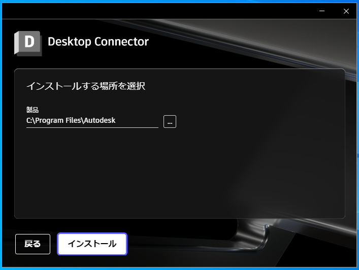 - Desktop Connector の既定のインストール場所は「C:\Program Files\Autodesk\Desktop Connector」です。この場所は、Desktop Connector のインストール中に変更できます。この場所を変更すると、プログラム ファイルのインストール場所が変更されます。この場所を変更しても、Desktop Connector ワークスペースの保存場所は変更されません。