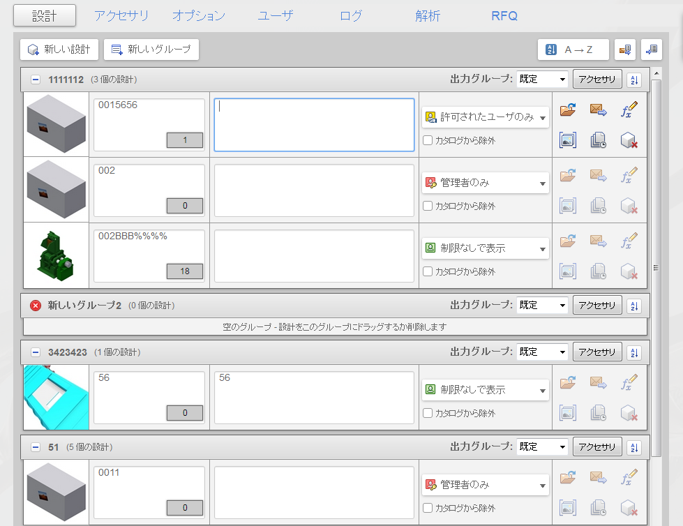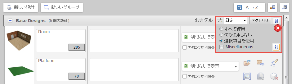 を選択し、設計に含まれるアクセサリの特定グループに追加します。