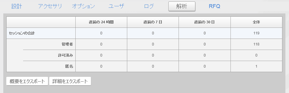 このページには、設計のセッション数の集計が表示されます。