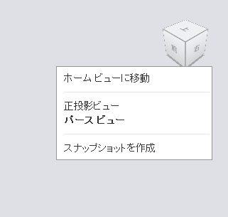 の面、エッジ、コーナー、および回転矢印をクリックします。[正投影ビュー]または[パースビュー]を選択するには、ドロップ ダウンメニューから下向きの矢印をクリックします。