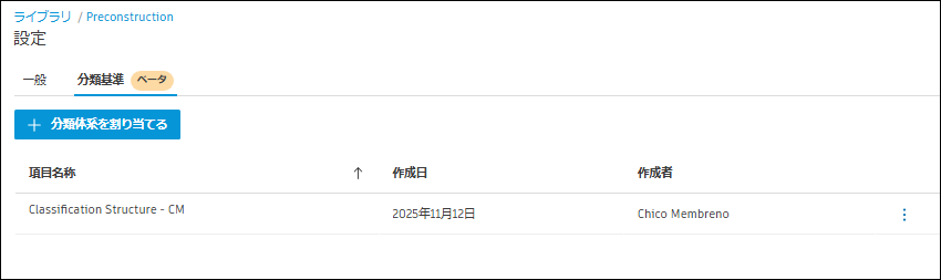 ライブラリの行項目に分類基準のタグを付けるには、施工準備ライブラリにライブラリの分類基準を割り当てる必要があります。