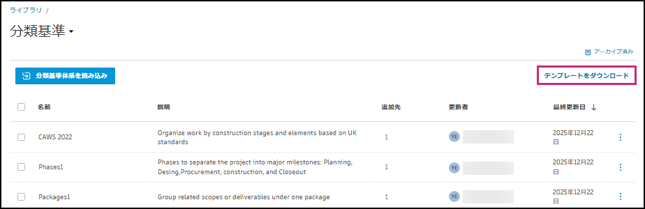 - [分類基準体系を読み込み] をクリックして、完成した XLSX ファイルをライブラリに再度読み込みます。