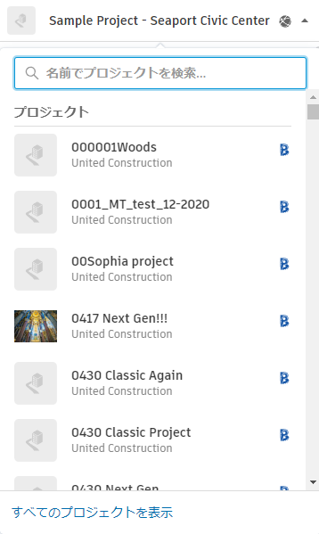 [プロジェクト リスト]には、追加したプロジェクトが表示されます。プロジェクト管理者は、プロジェクト リストを使用して新しいプロジェクトを作成したり、既存のプロジェクトを編集したり、プロジェクト テンプレートを作成することができます。