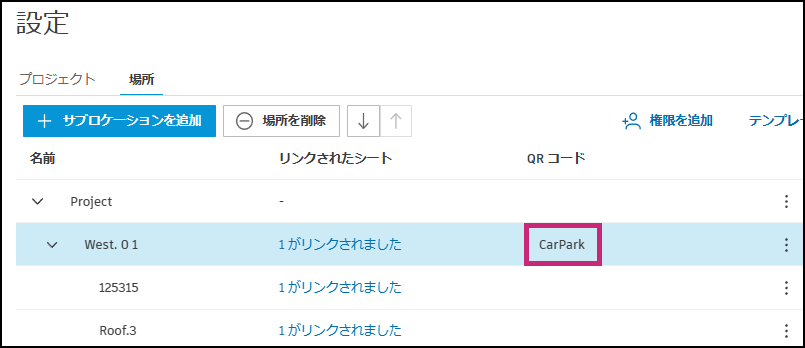 モバイル デバイスで QR コードをスキャンすることの詳細については、「Autodesk Construction Cloud モバイル アプリ上の場所(Android)」および「Autodesk Construction Cloud モバイル アプリ上の場所(iOS)」を参照してください。