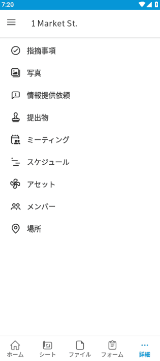 この場所に関連付けられた 指摘事項 、 フォーム 、 アセット 、 情報提供依頼 、または提出物にアクセスするために、目的の場所をタップするか、展開アイコンを使用して目的のサブ場所に移動します。