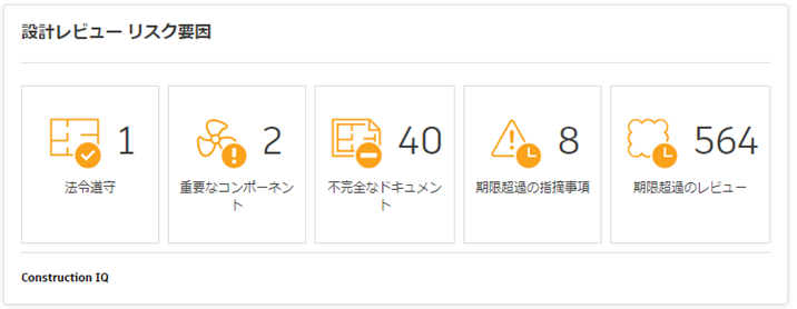 Construction IQ は、法令遵守の問題、重要な建築コンポーネントの問題、設計およびドキュメント作成でのエラーや漏れなど、重要な設計の問題の予測と防止に役立ちます。