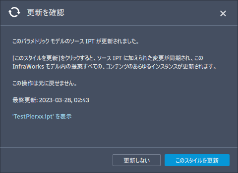 | 土木構造物のジオメトリのクリッピング(2023.1) | InfraWorks コンテンツとしての Revit ファミリ(2023.1) | 更新を確認(2023) |