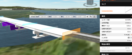 デッキのスライスを確認および修正して、橋梁のデッキの断面の絶対位置または相対位置をコントロールしたり、デッキの断面の寸法を修正することができます。キャンバス内で、デッキの断面を追加したり、削除したり、オフセットすることができます。