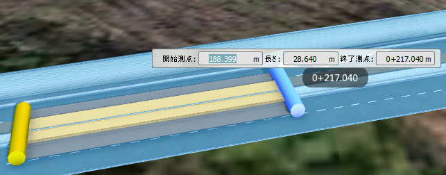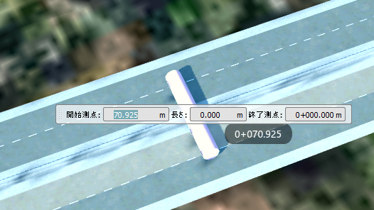 道路にカーソルを合わせ、スライダ グリップを使用して橋の開始測点の位置を選択します。