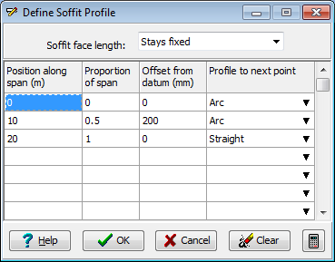 必要に応じて、スパン位置に沿った任意の位置、および次の点選択への縦断を編集します。