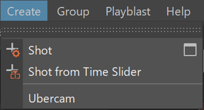 - ショットの作成(Create Shot)ボタンの横にあるキャレットをクリックすると、フライアウト メニューが開き、選択したタイム スライダ レンジからのショットの作成やショットの作成オプション(Create Shot Options)ウィンドウの使用など、追加のショット作成オプションにアクセスできます。