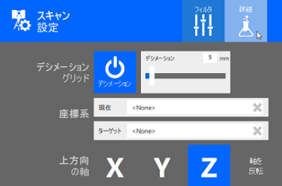 デシメーション グリッド設定は、単一ポイントが占有できる最小の体積を指定することによって、点群とともに読み込むポイントの数をコントロールします。[デシメーション]ボタンをクリックして、デシメーションのオン/オフを切り替えます。