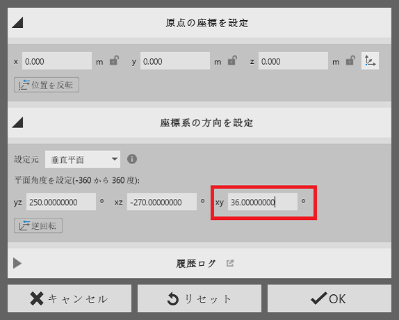 2026.1 リリースでは、[原点を更新]ツールの回転入力フィールドにおいて表示精度が強化されました。この更新は、座標系の位置合わせにおいて正確な回転を定義する際の操作性と精度を向上させることに重点を置いています。