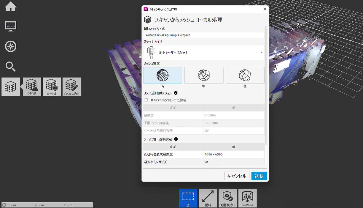 点群をデスクトップ上で直接セグメント化されたメッシュ モデルに変換できます。