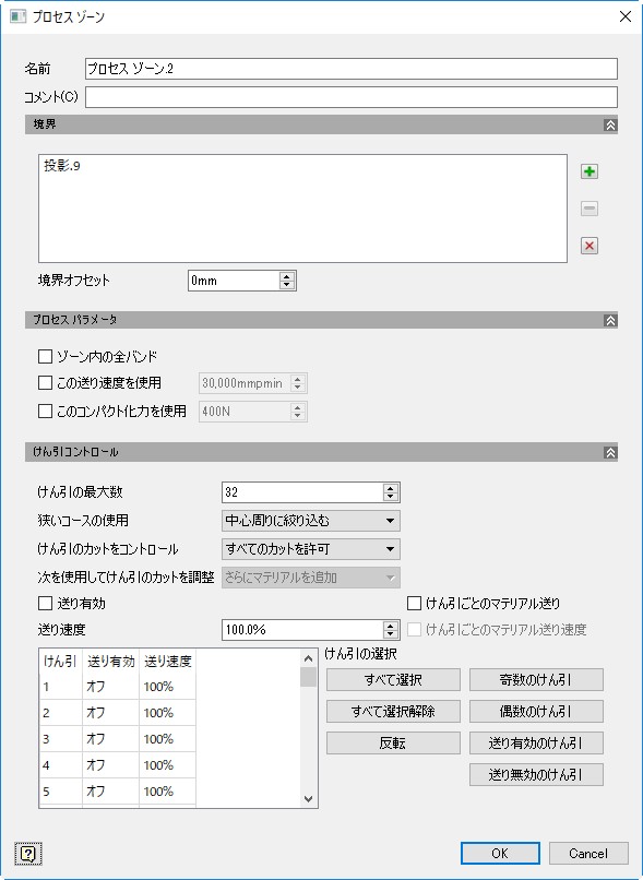- [すべてのカットを許可]: プロセス ゾーン内のすべてのカットを許可します。