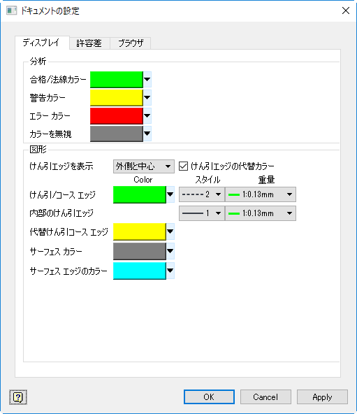 解析の作成時に使用する既定の色を設定するには、[表示]タブのこのセクションを使用します。これらの色は解析単位でオーバーライドすることができます(該当する場合)。
