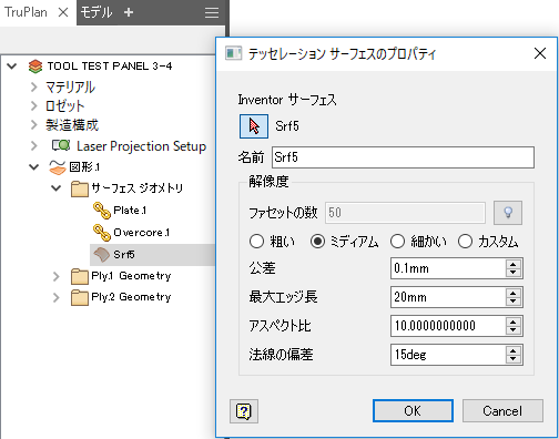 注: [テッセレーション サーフェスのプロパティ]ダイアログ ボックスは、Inventor サーフェスでのみ使用できます。参照サーフェス(STL ファイル)では使用できません。