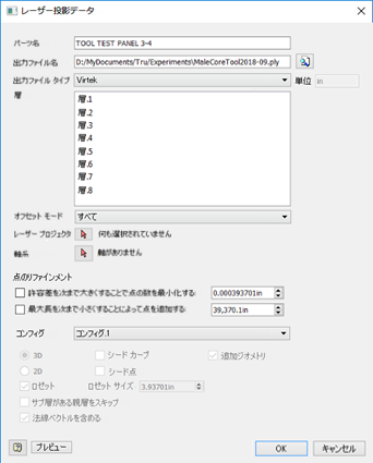[レーザー投影データ]ダイアログ ボックスが開きます。