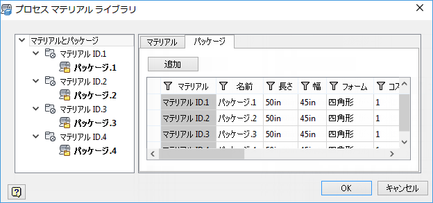 - [プロセス マテリアル ライブラリ]ツリーでパッケージを選択します。