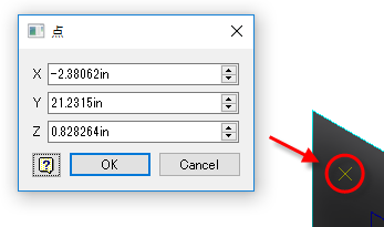 点の座標が[点]ダイアログ ボックスに表示され、点の位置のプレビューがアプリケーション ウィンドウに表示されます。