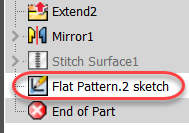 - 新しいフラット パターン ノードを右クリックして[フラット パターンを編集]を選択し、Inventor スケッチ環境で変更します。