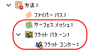 - [平面を作成]: 層の平坦化形状のセットを作成します。1 つまたは複数の平坦化されたコンターが作成され、サーフェスに重ねられます。後で平面を手動で編集することはできますが、修正されたドレープ設定を使用してこの方法を再生成すると新しい平坦化形状が作成され、行った手動編集内容は上書きされます。