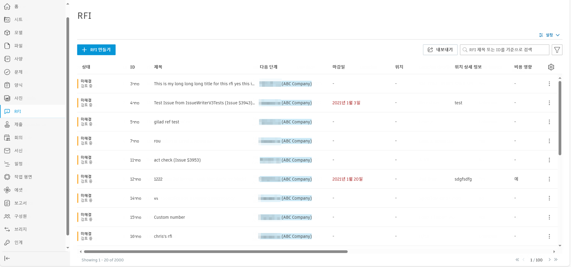 RFI 도구 작업을 시작하기 전에 RFI 관리를 참조하여 권한, 사용자 지정 필드, 유형 등에 대해 자세히 알아보십시오.