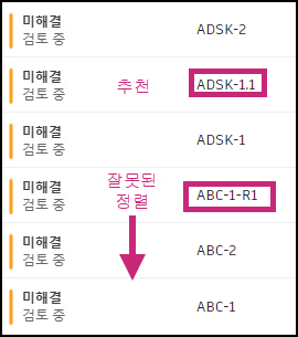 두 리비전 방법의 정렬 순서를 확인합니다.