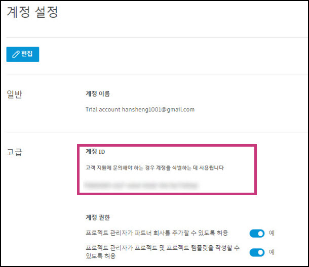 지원 관련 목적이나 사용자 통합을 연결하려면(엔터프라이즈 계정만 해당) 고유한 Autodesk Construction Cloud 계정 ID가 필요합니다. 다음과 같이 보려면: