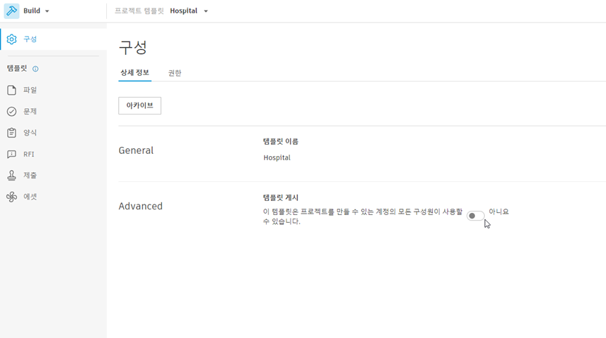 프로젝트 템플릿 게시하려면 게시할 프로젝트 템플릿 선택합니다.