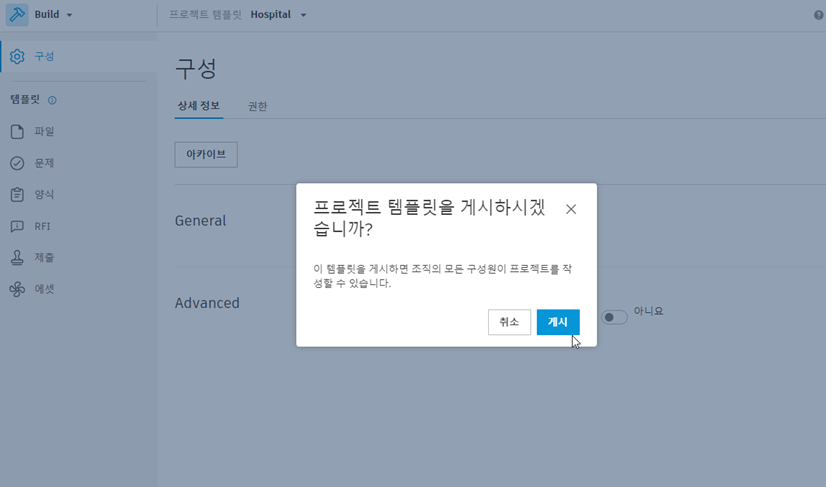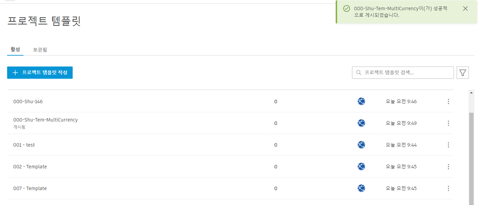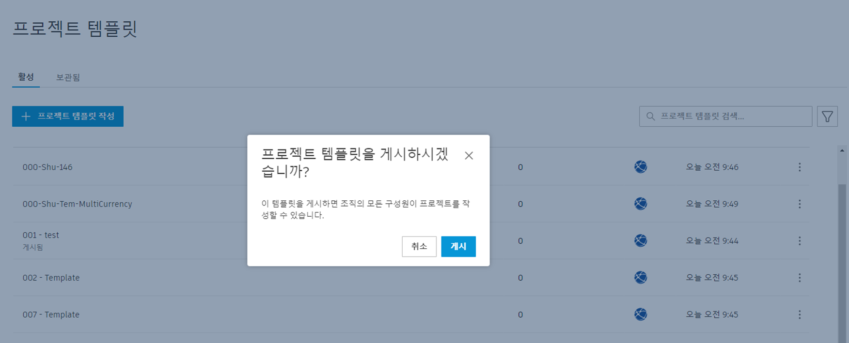 선택합니다.이제 계정 관리자가 프로젝트 템플릿을 게시할 수 있습니다. 게시된 템플릿을 통해 계정 관리자는 조직의 모든 프로젝트 작성자가 프로젝트 템플릿을 사용할 수 있도록 보다 쉽게 설정할 수 있습니다.