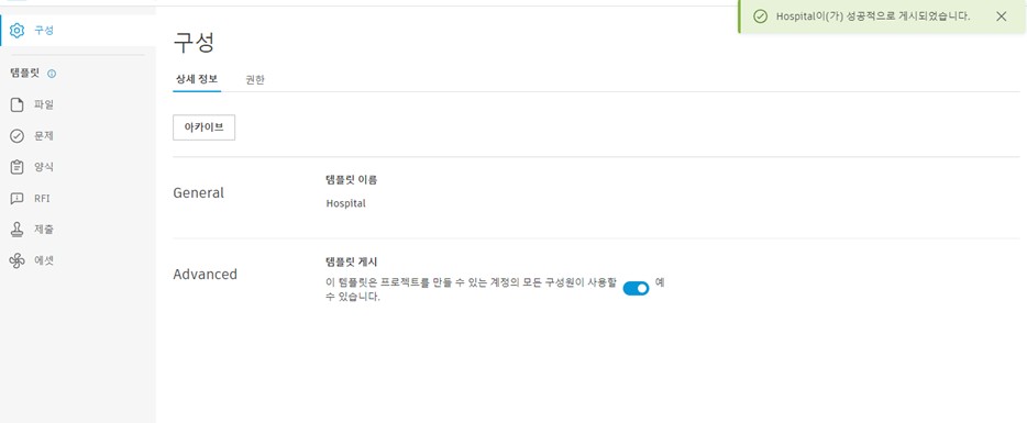 그러면 프로젝트 템플릿이 성공적으로 게시되었음을 알리는 메시지가 표시됩니다.