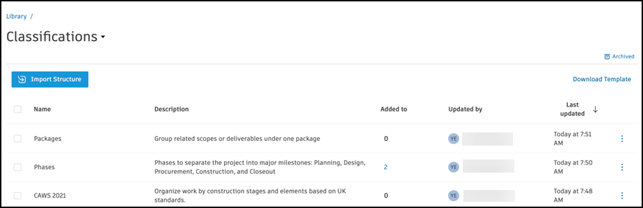 분류 구조는 일관된 코드 및 정보 계층으로 프로젝트 데이터를 구성하는 데 사용됩니다. 구조는 MasterFormat, UniFormat, Uniclass와 같은 산업 표준이나 자체 회사별 구조일 수 있습니다. 분류는 계정 또는 프로젝트에 대한 공유 팀 언어로 생각할 수 있으므로 프로젝트 데이터를 더 쉽게 찾고, 추적하고, 분석할 수 있습니다.