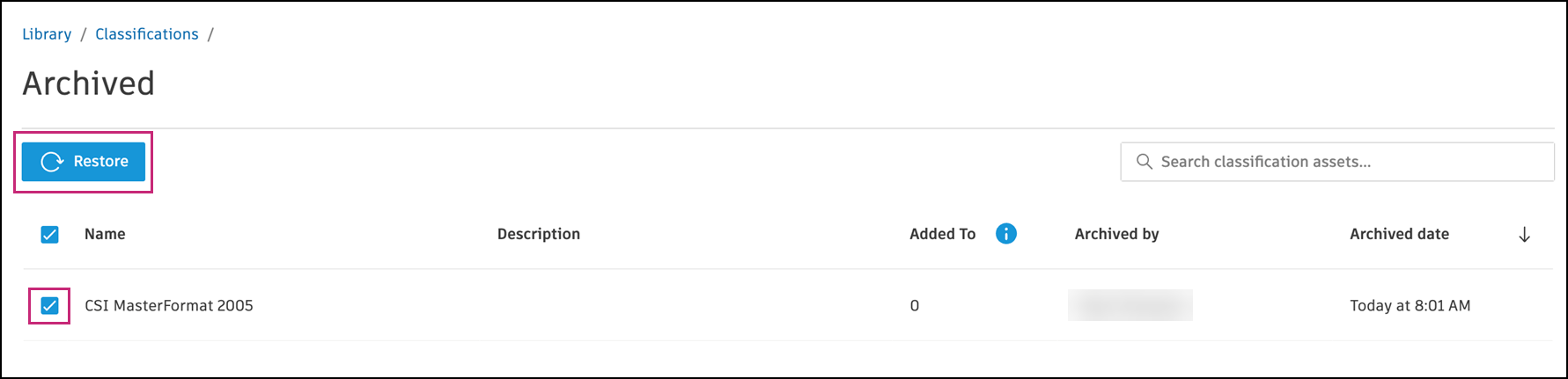 보관된 분류 구조를 복원하여 분류 리스트로 반환하면 새 프로젝트에서 사용할 수 있습니다. 보관된 구조는 복원되지 않는 한 프로젝트에 추가하거나 프로젝트에서 제거할 수 없습니다.